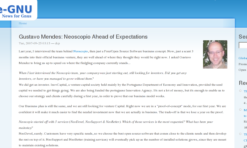 "Last year, I interviewed the team behind Neoscopio, then just a Free/Open Source Software business concept. Now, just a scant 3 months into their official business venture, they are well ahead of where they thought they would be right now. I asked Gustavo Mendes to bring us up to speed on where the fledgling company currently stands"