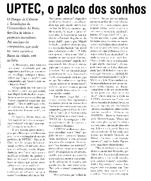 A Agência Lusa divulgou uma notícia sobre um projecto com vista a demonstrar as potencialidades do desenvolvimento com base em softwar Open Source. Trata-se de jogo em rede que está a ser desenvolvido na Neoscopio por finalistas do curso de Engenharia Informática do ISEP. A notícia foi publicada em diversos meios de comunicação social.